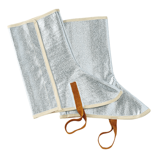 Gaiters in aluminized para-aramidic fibre, high mechanical and heat resistance, with back velcro closure; height 38 cm.
